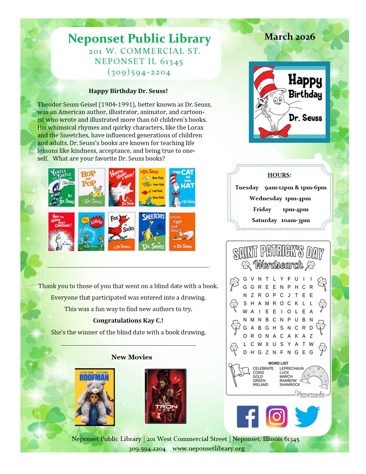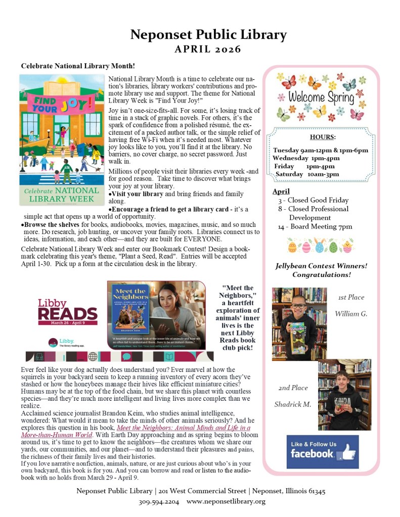 Phone: 309-594-2204 Fax: 309-594-2204 neponsetlibrary@yahoo.com